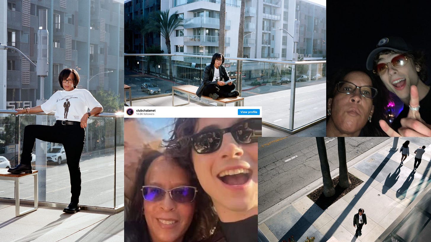 We have to talk about Simone. Sometime last week, the identity behind the infamous Timothee Chamalet fan account, Club Chalamet was revealed. Simone Cromer is the 59-year old woman who regularly crashes out about our favorite Victorian orphan. She’s also, quite unexpectedly, Black. I definitely paused when I saw her photos from the story which honestly look like shots that your auntie took of herself for Facebook. This was a somewhat baffling development but you know…not a monolith and all that. I detest Stan culture and I think that though we joke about Club Chalamet, it is not a normal thing to spend your time doing, especially not at 59. Invariably though, it has helped Chalamet’s career and movie promotion, labor that is done…for free and for the benefit of the other Timmy-stans out there. I really don’t know what else to say about it besides that maybe I should have known that the architect behind a successful albeit unhinged fandom is a Gen X Black woman. I’m asking you to understand how truly bizarre this is. It would be like finding out that Kamala Harris had founded a fan account for one of the boys on The Summer I Turned Pretty. She told WSJ mag, “‘I’m not ashamed of my fan activity.‘I’m not a stalker. I’m not weird.’ Respectfully, I have to disagree but ok! Like I said, Simone could use therapy but the photos are iconic.