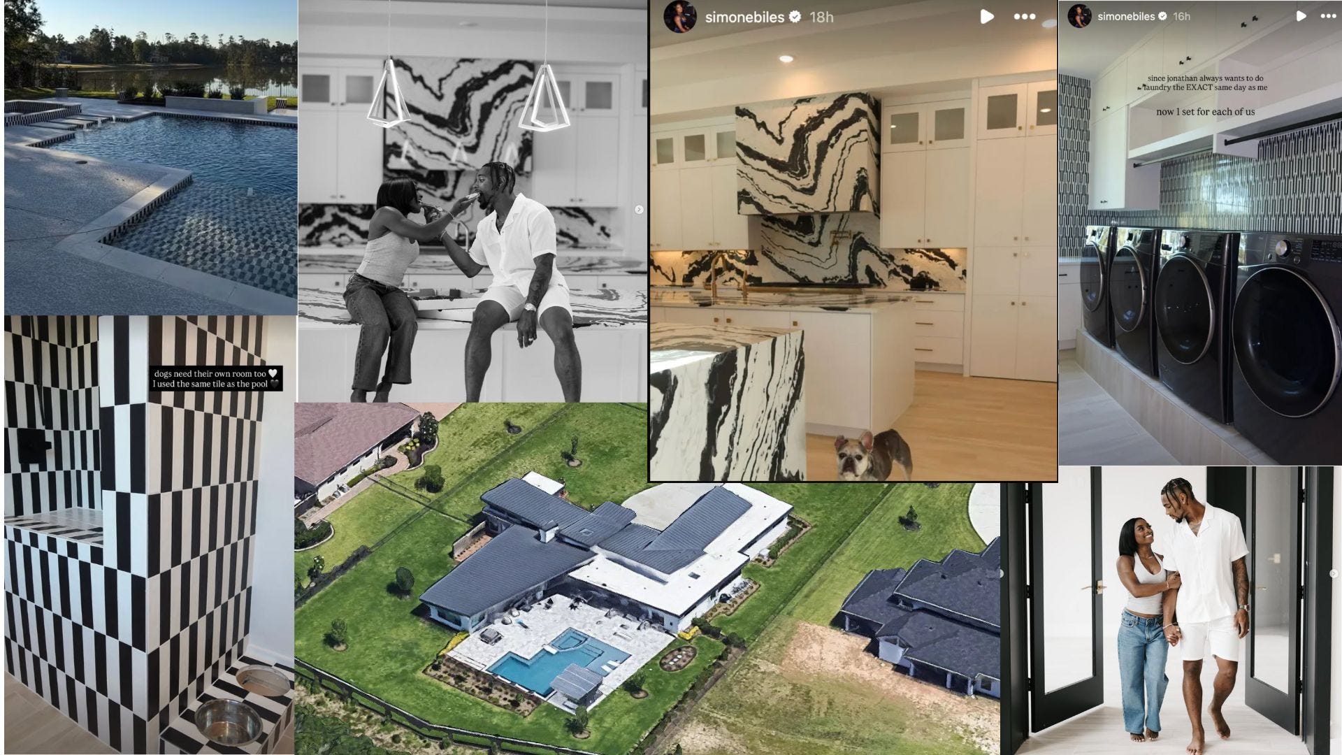 Cruella de Vil cosplay: I am not sure if Simone Biles did this intentionally but when she started sharing photos of the home that she had built with husband, Jonathan Owens, she inadvertently confessed to being into Cruella de Vil cospay. Every single thing in their home is of a black and white motif. She has been working on this house for years so I imagine that she selected things with care but seeing it all together was very confusing. Now not too much on Simone since she can do no wrong in my book except, I guess when it comes to design. She’s been working on this home for five years now but it is just so fascinating to me that every single part of it includes black and white mixed together, even outdoor elements like the pool and basketball court. It’s one of those, if you like it, I love it things but like…why?